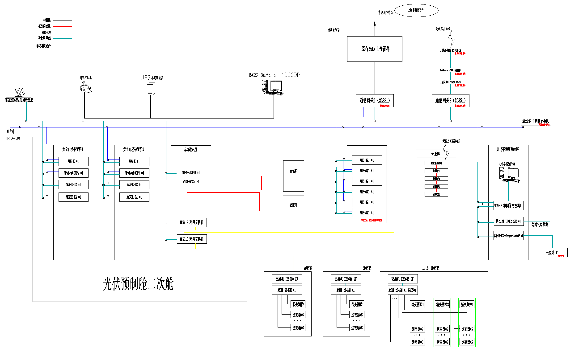 光伏電站中5臺箱變之間通過光纖環(huán)網(wǎng),保證數(shù)據(jù)長距離的穩(wěn)定傳輸,通過通信管理機(jī)及網(wǎng)絡(luò)交換機(jī)實(shí)時(shí)采集微機(jī)保護(hù)裝置、電能質(zhì)量在線監(jiān)測裝置、計(jì)量、遠(yuǎn)動系統(tǒng)等二次設(shè)備數(shù)據(jù),實(shí)現(xiàn)光伏發(fā)電系統(tǒng)監(jiān)控與自動化管理;同時(shí),配置對時(shí)裝置、遠(yuǎn)動裝置滿足系統(tǒng)與上級調(diào)度的需求,配置一套一體化電源系統(tǒng),為二次設(shè)備及監(jiān)控主機(jī)等重要設(shè)備運(yùn)行提供穩(wěn)定可靠的電源,實(shí)現(xiàn)整個(gè)光伏系統(tǒng)的安全、穩(wěn)定運(yùn)行。