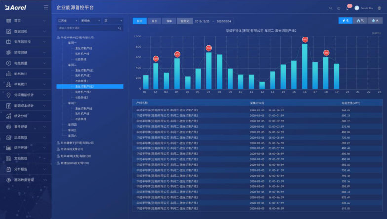 安科瑞企業(yè)能源管控平臺采用自動化、信息化技術(shù)和集中管理模式,對企業(yè)的生產(chǎn)、輸配和消耗環(huán)節(jié)實(shí)行集中扁平化的動態(tài)監(jiān)控和數(shù)據(jù)化管理,監(jiān)測企業(yè)電、水、燃?xì)狻⒄羝皦嚎s空氣等各類能源的消耗情況,通過數(shù)據(jù)分析、挖掘和趨勢分析,幫助企業(yè)針對各種能源需求及用能情況、能源質(zhì)量、產(chǎn)品能源單耗、各工序能耗、重大能耗設(shè)備的能源利用情況等進(jìn)行能耗統(tǒng)計(jì)、同環(huán)比分析、能源成本分析、用能預(yù)測、碳排分析,為企業(yè)加強(qiáng)能源管理,提高能源利用效率、挖掘節(jié)能潛力、節(jié)能評估提供基礎(chǔ)數(shù)據(jù)和支持。