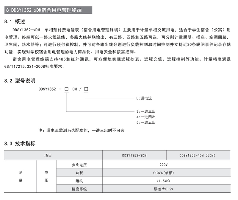 DDSY1352-xDM宿舍用電管理終端