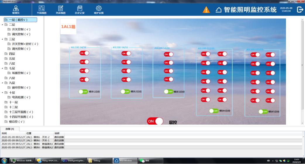 3)可以對單個照明回路實現(xiàn)開關(guān)控制;每個模塊、樓層都有相應(yīng)的模塊控制開關(guān)和樓層控制開關(guān),也可以一個模塊或者整個樓層實現(xiàn)開關(guān)控制。