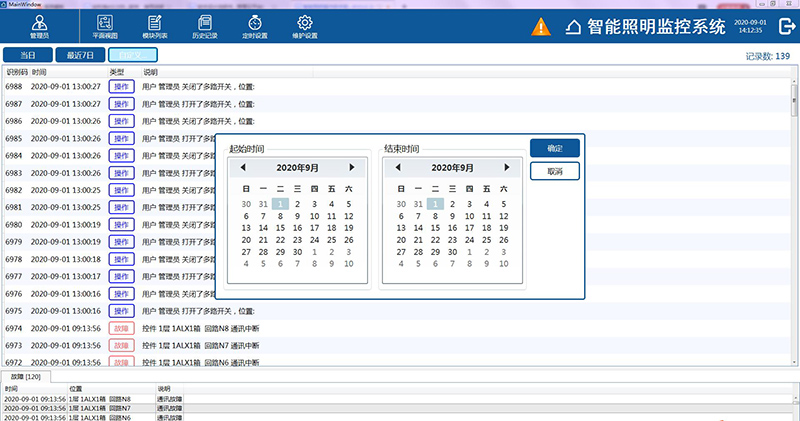 2)當(dāng)發(fā)生模塊離線、網(wǎng)關(guān)設(shè)備掉線或者狀態(tài)反饋和下發(fā)控制命令不一致時會發(fā)生故障報警,并將故障報警信息記錄并顯示在界面中。