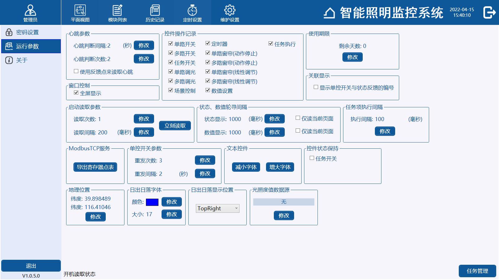 9)系統(tǒng)可以通過預(yù)設(shè)的當(dāng)?shù)亟?jīng)緯度信息,自動計算每天的日升日落時間;根據(jù)天文時鐘控制照明開關(guān),實現(xiàn)日落開燈、日出關(guān)燈的功能。