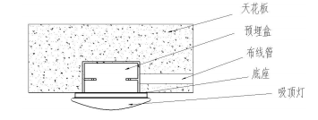 c.吸頂式燈具安裝:先將標(biāo)準(zhǔn)型 86 預(yù)埋盒安裝好;再固定安裝支架,安裝支架固定位置與預(yù)埋盒中心位置偏移 43mm。連接好總線及電源線;將安裝支架卡入燈具內(nèi),并擰上螺釘,即完成安裝.